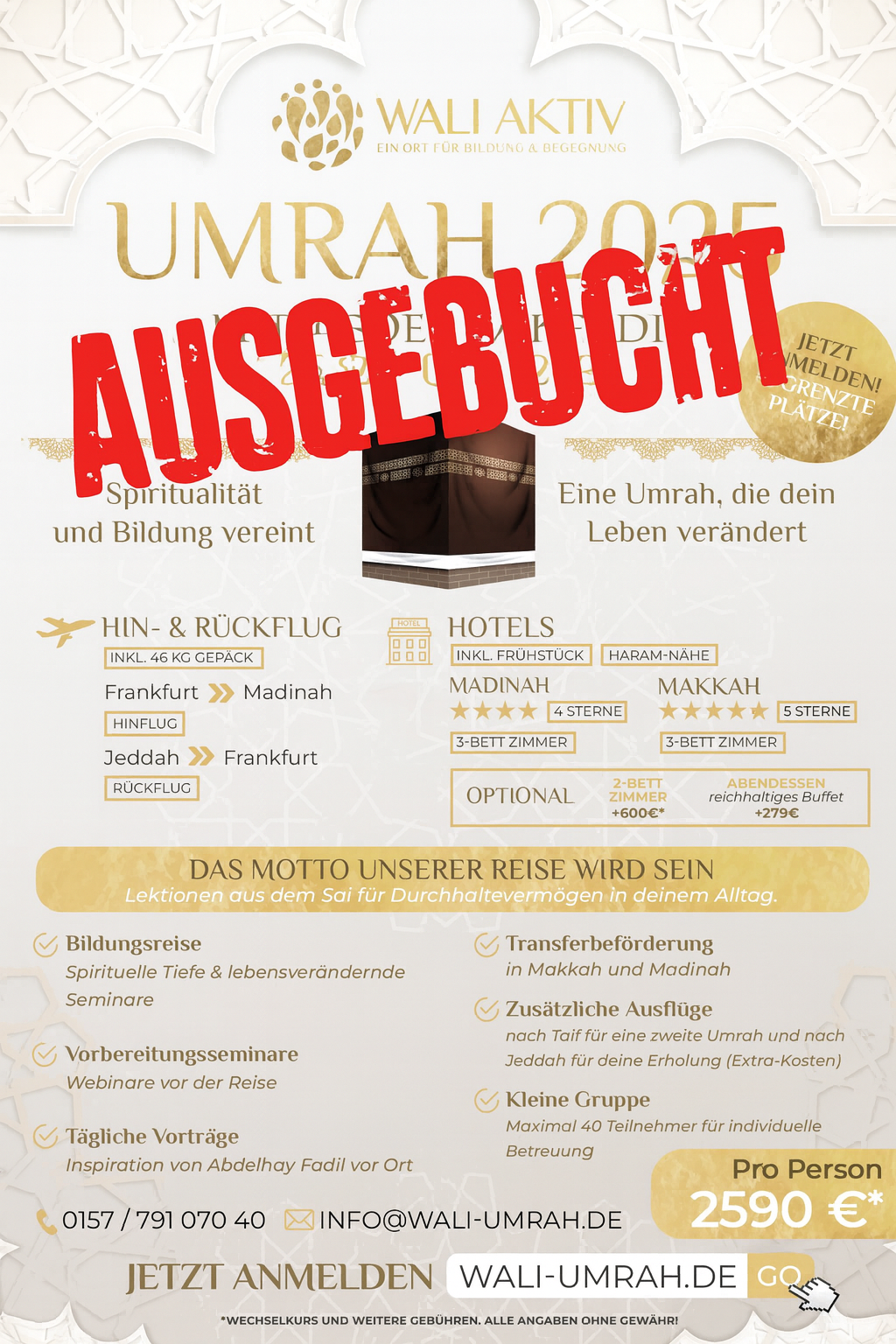 intellektuellen Dimensionen der Umrah eintauchst. Mit unserer Unterstützung wirst du gestärkt, erfüllt und mit einem neuen Bewusstsein nach Hause zurückkehren.